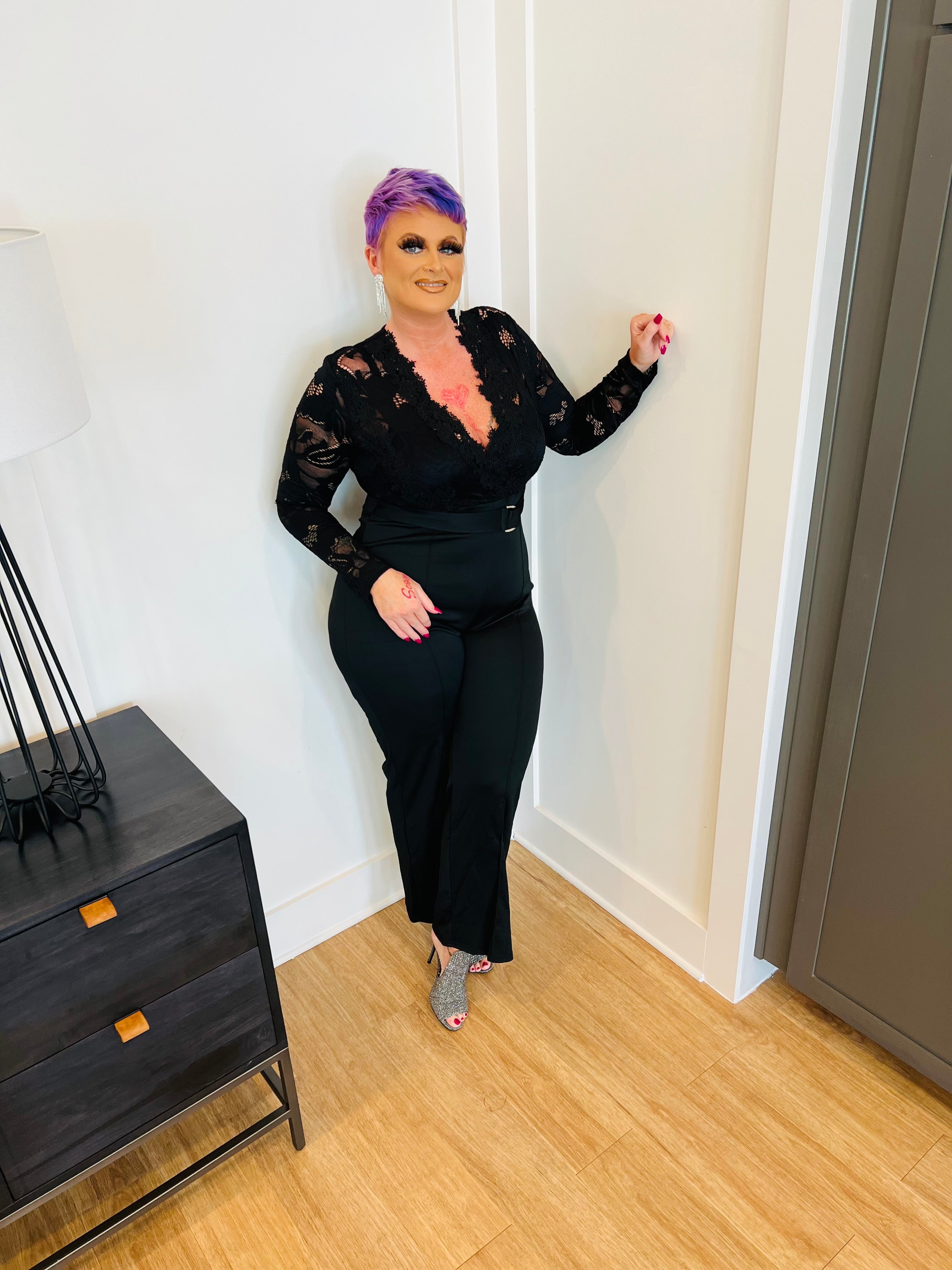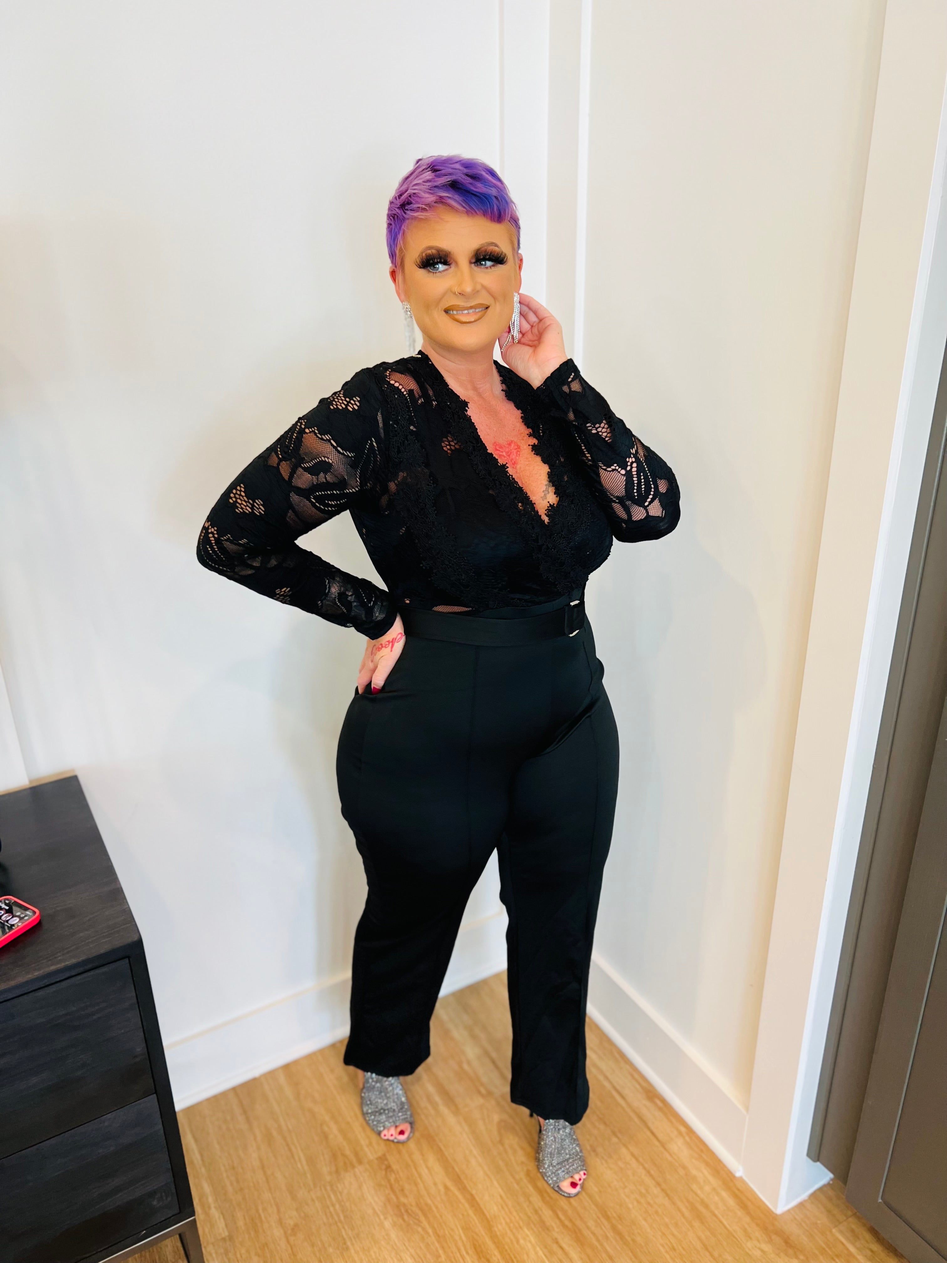 SEXY JUMPSUIT WITH BELT GOLD BUCKLE