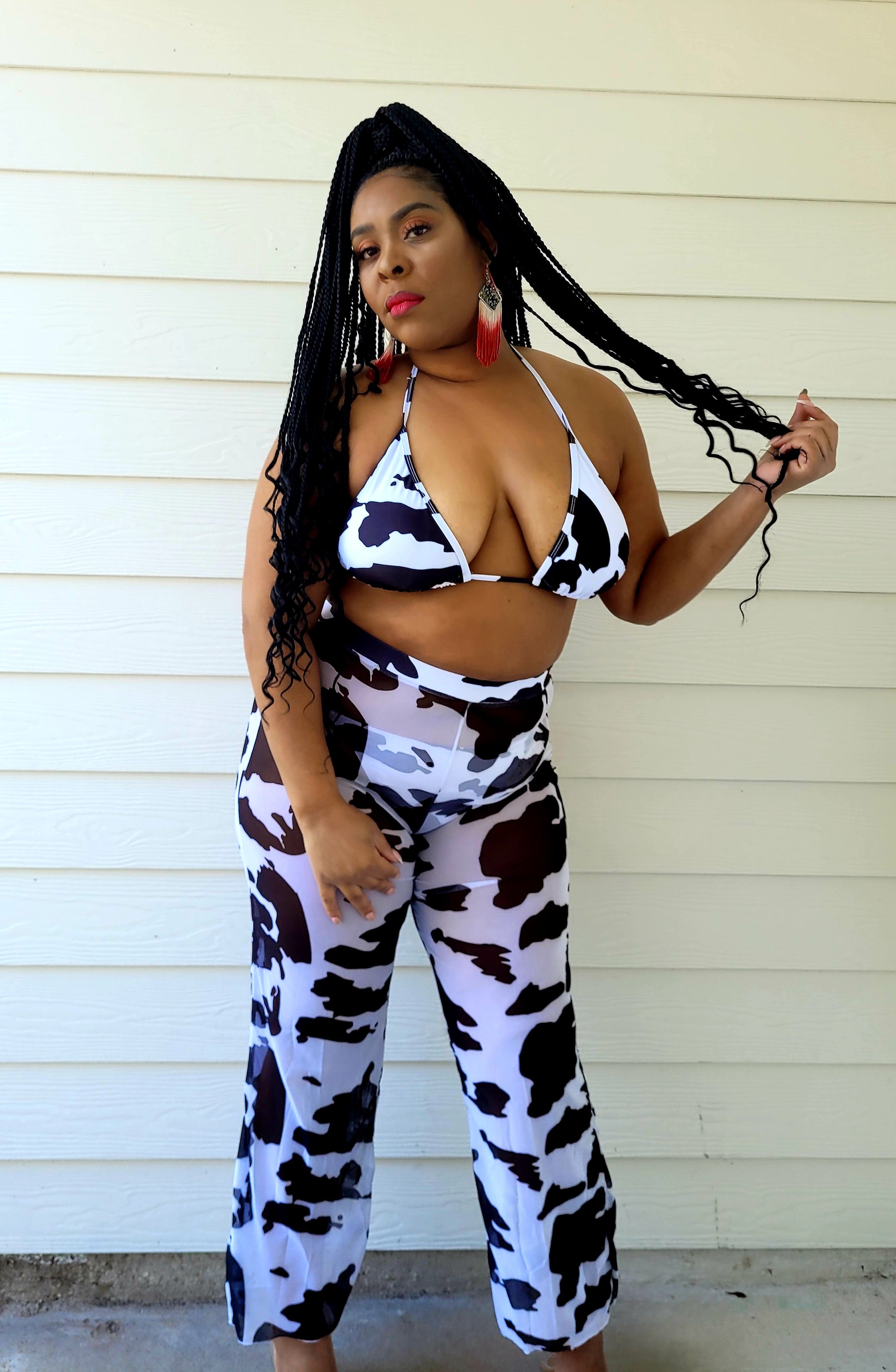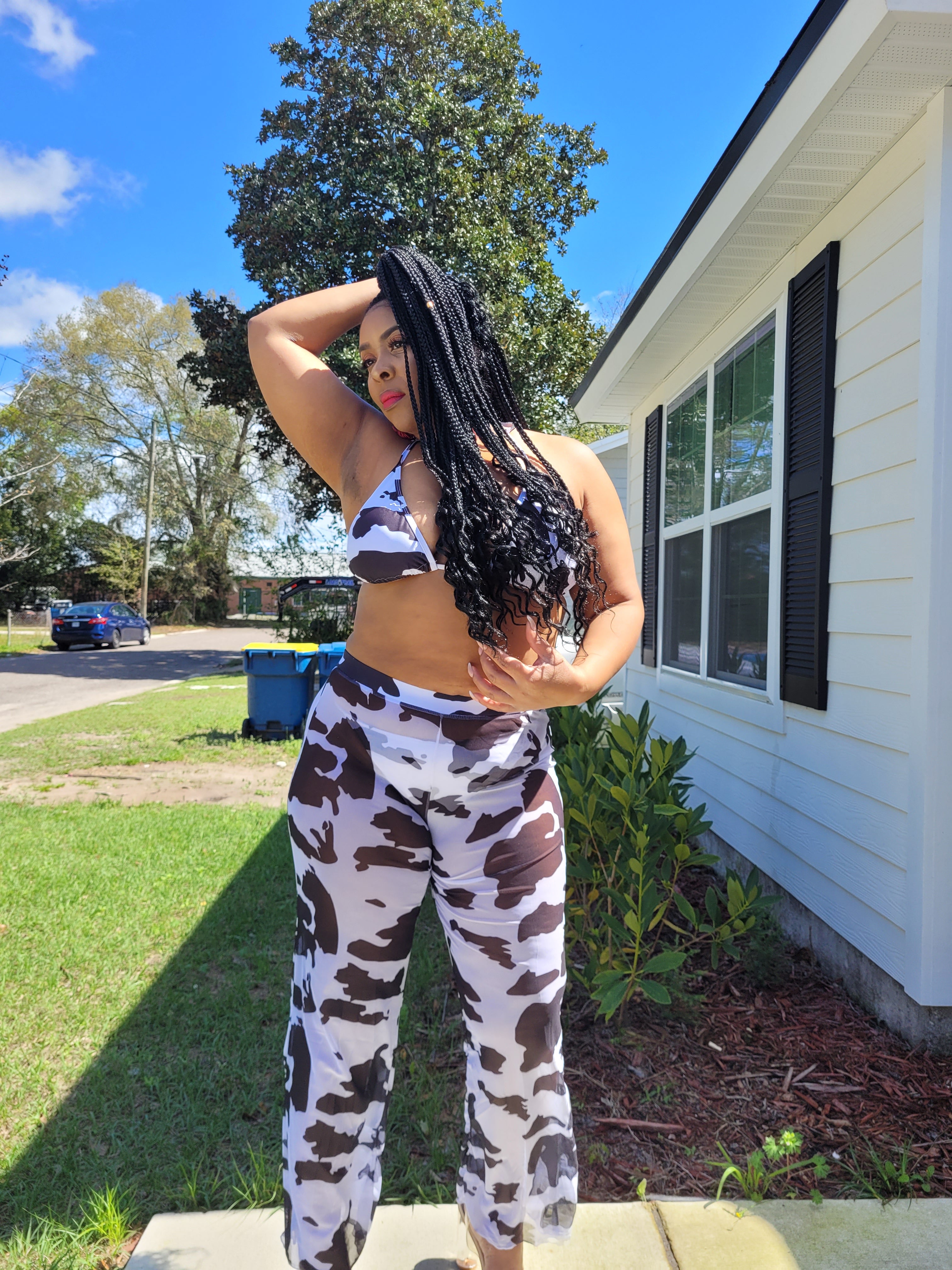 COW PRINT THREE PIECE BIKINI AND COVER UP PANTS