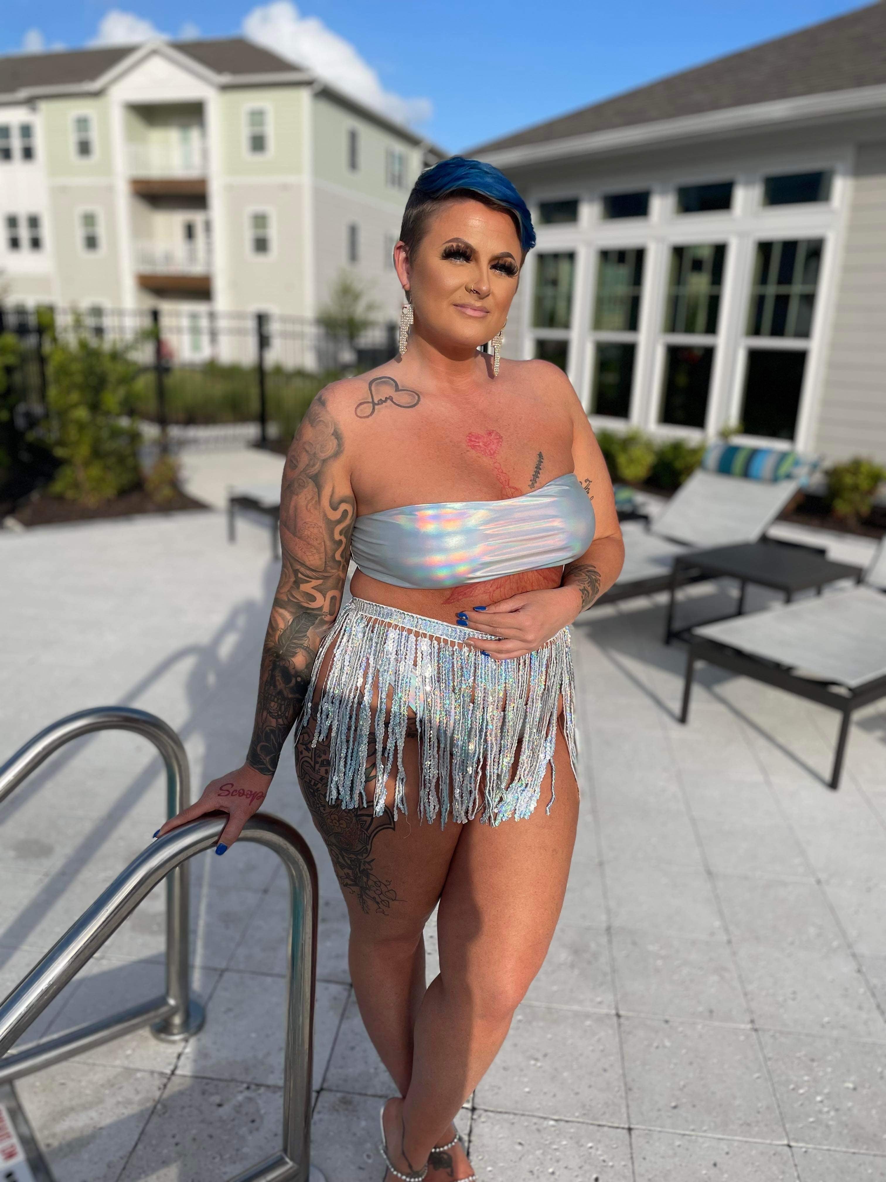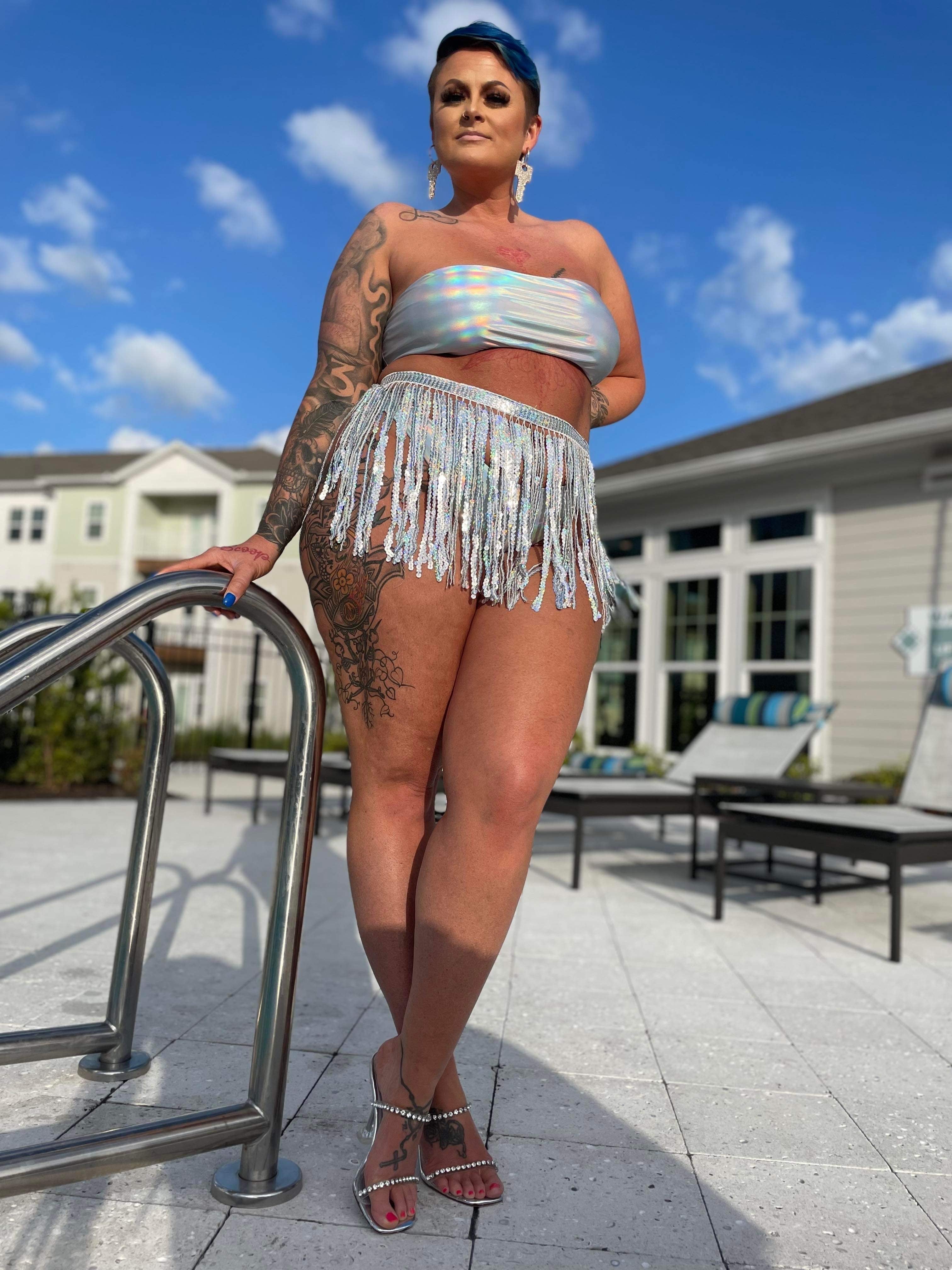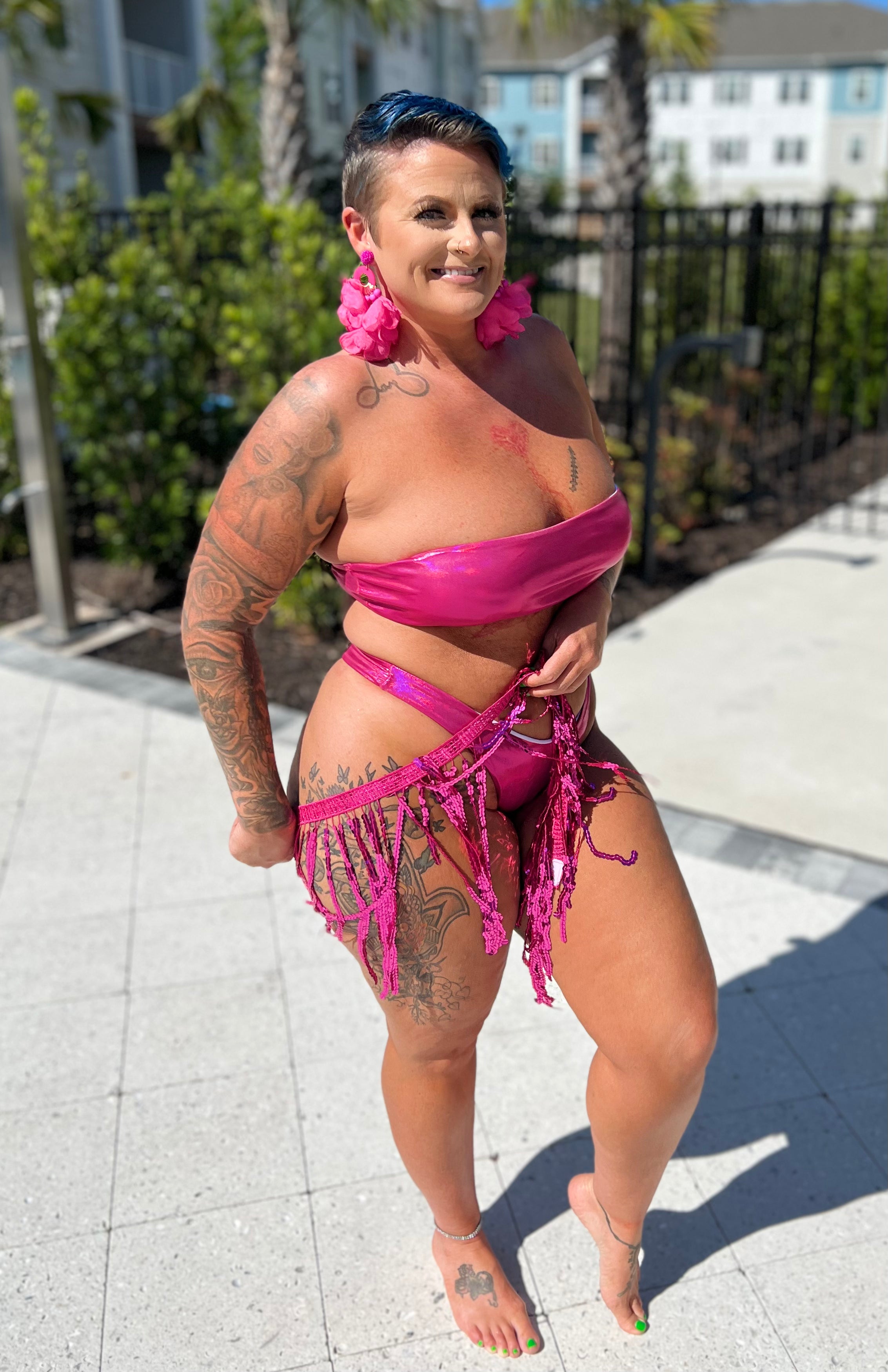 SEXY METALLICA BANDEAU BIKINI SWIMSUIT AND SEQUIN FRINGES