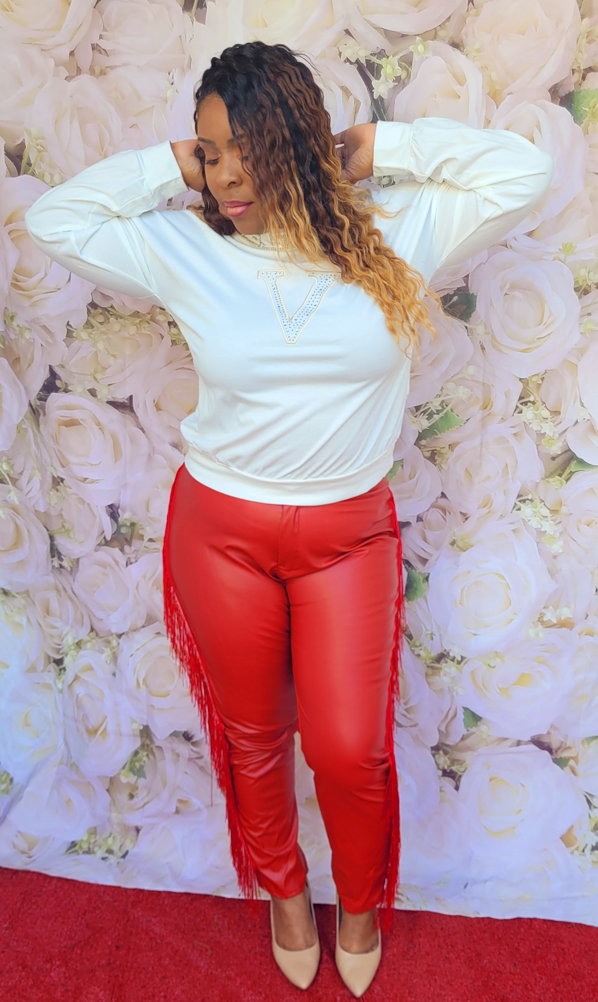 SOFT WHITE GOLD TRIMMED DESIGNER "V" BLOUSE