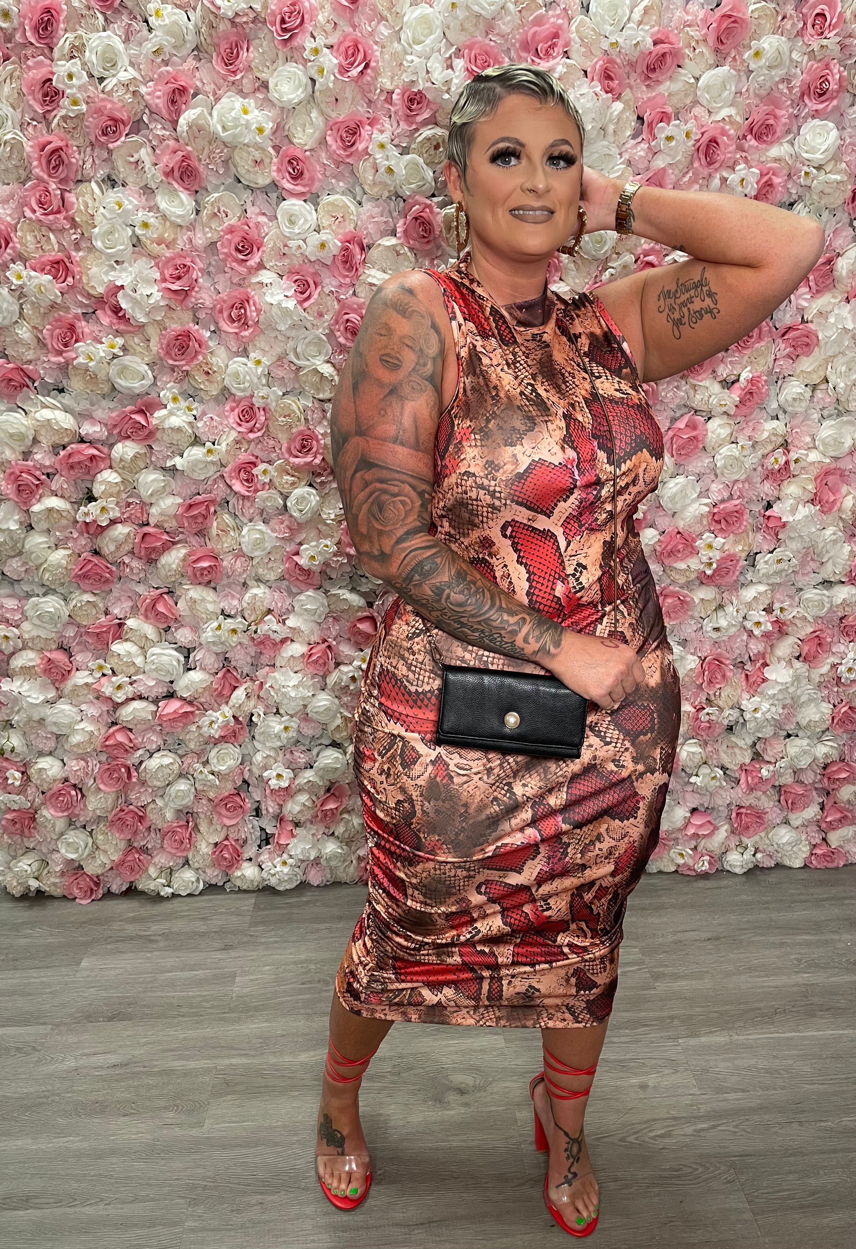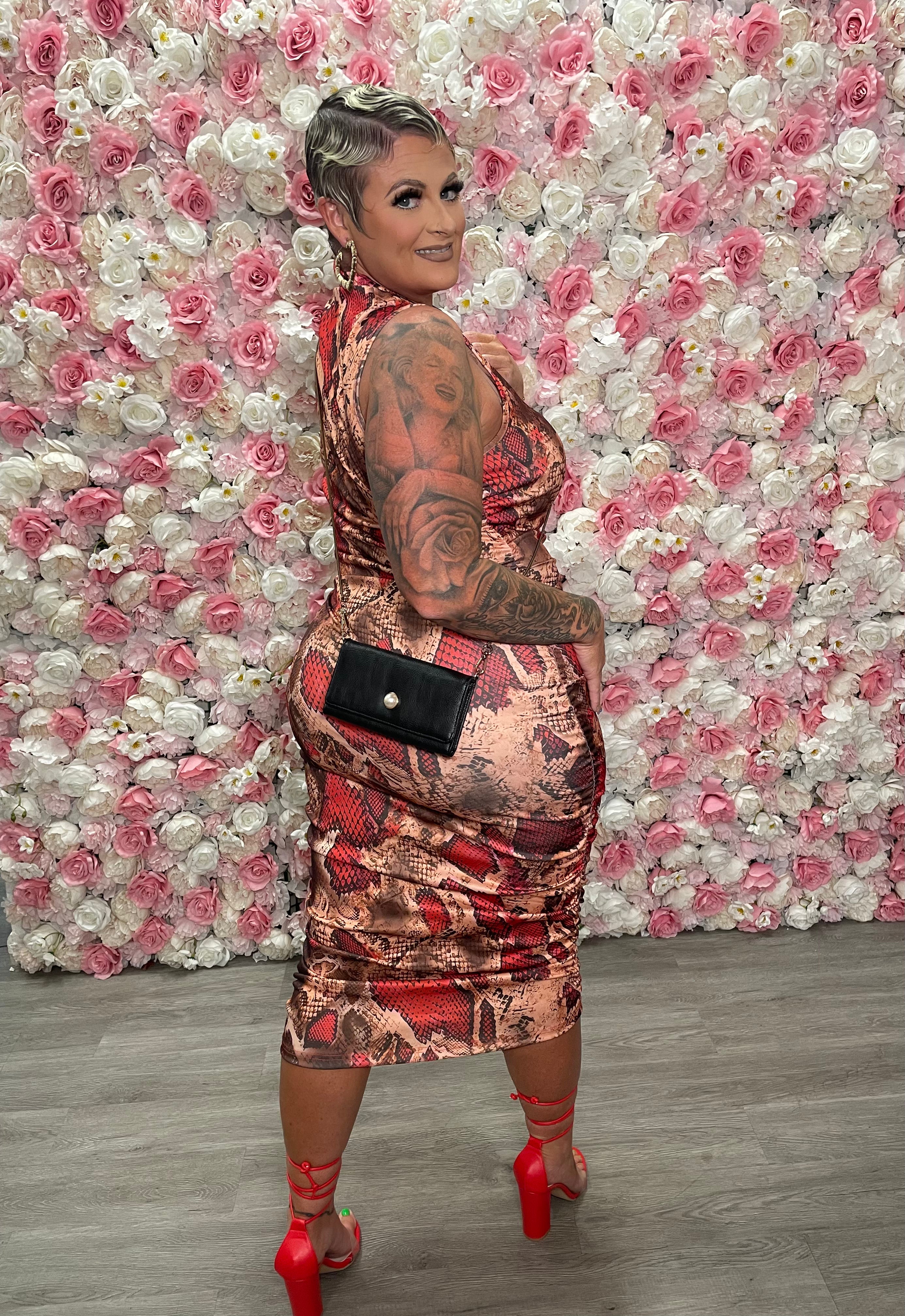 SEDUCTIVE SNAKE PRINT BODY CON DRESS